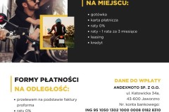 Dane do wpłaty: ANDEXMOTO SP. Z O.O. Ul. Katowicka 34a, 43-600 Jaworzno Nr konta: ING 95 1050 1302 1000 0008 0182 8310